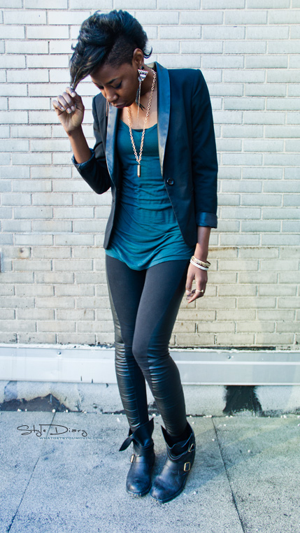 Mondays tend to be a relaxed day or a day I dress to conquer the world. At this point in my semester, it’s predominantly a relaxed day since i’m usually functioning off an all-nighter. I think the boyfriend blazer with the leather paneled leggings meshes the two mindsets; also a key thing here, cover your butt! Leggings aren’t pants!