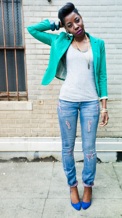 Tuesday was my favorite outfit of the week! You may have seen this outfit in my Twitter or Instagram feeds when i was at BET, in the 106 & Park studio. This blazer dresses up anything. I don’t get to wear it often, but when i do I always get a compliment. It’s a go to confidence builder piece for me.