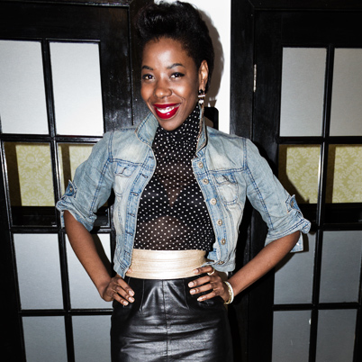 I finally got some sleep, and i felt like making up for my lack of effort. Throw on my go-to genuine leather skirt (another thrift shop keeper), with a sheer blouse, my new lipstick for fall/winter, and run a flat-iron through my hair, and I was bringing sexy Fridays! Most of the day I wore it with a jean jacket.