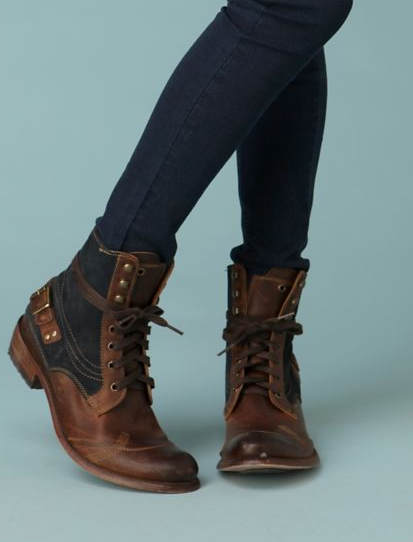 I have a habit of making up things (clothing items) in my head that don’t actually exist; I probably should have become a designer…hey it’s never too late.  Anyway, since last summer, I’ve been searching high and low for a pair of boots I had a dream about.  They were flat above the ankle lace-up boots, that were dark brown leather with cream canvas side accents, and a brown leather kiltie (the kiltie is optional though).  I don’t like to settle, but I thought i was going to have to resort to one of the high-end fashionable combat boots I’ve seen out.  But alas, the Sendra’s Old English Boot, it’s just about workable.  No cream canvas, instead blue suede, and no kiltie, but that never killed anybody. Sendra is an internationally respected shoe company, known for its amazing and super durable boots.  Which is great and all, but that $458 price tag made me go from a shoegasm to a heart attack! $500 is it worth it? hmmmm….