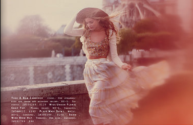 I’m always excited when the newest Free People catalog comes out. I love their clothes, their styling is usually noteworthy, and the photography without fail is always remarkable. For their catalogs, the people over at Free People go out of their way to make it magical (yes i said magical lol); for the January catalog they found the magic on the streets of Paris. They also had photographer, Guy Aroch behind the lens. His work is stunning; he has an innate ability of capturing beautiful passing moments; and most of his work uses an interesting contrast of desaturated and overly vibrant tones. I posted some of my favorites images from the spread, but there are plenty more in the January Free People Catalog. I’m eyeing the Sunburst Maxi Dress for the summer!